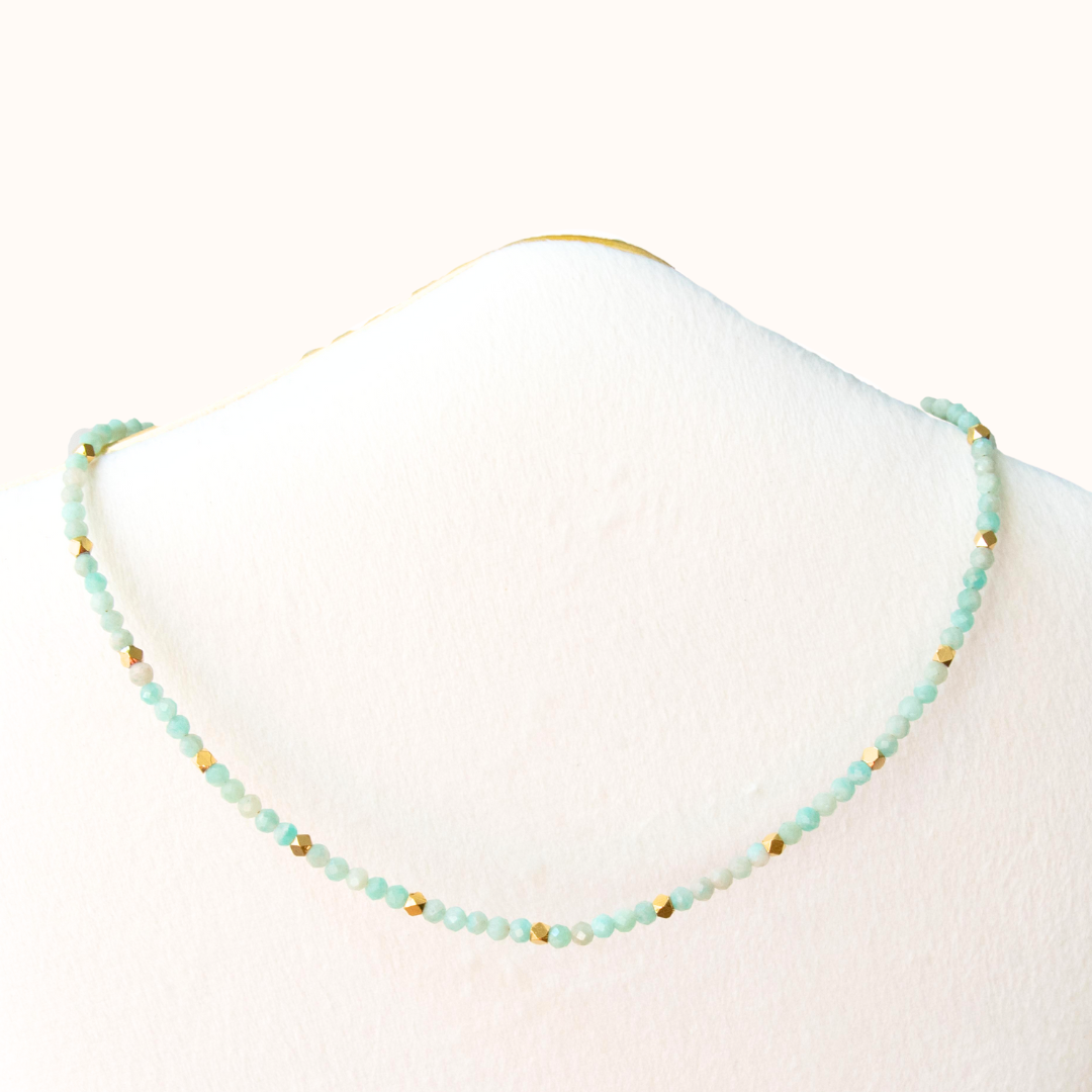 Amazoniet is een kalmerende steen die emotionele balans en heldere, hartgerichte communicatie bevordert. Het helpt stress te verminderen, ondersteunt gezonde grenzen en brengt harmonie in je gedachten en gevoelens.