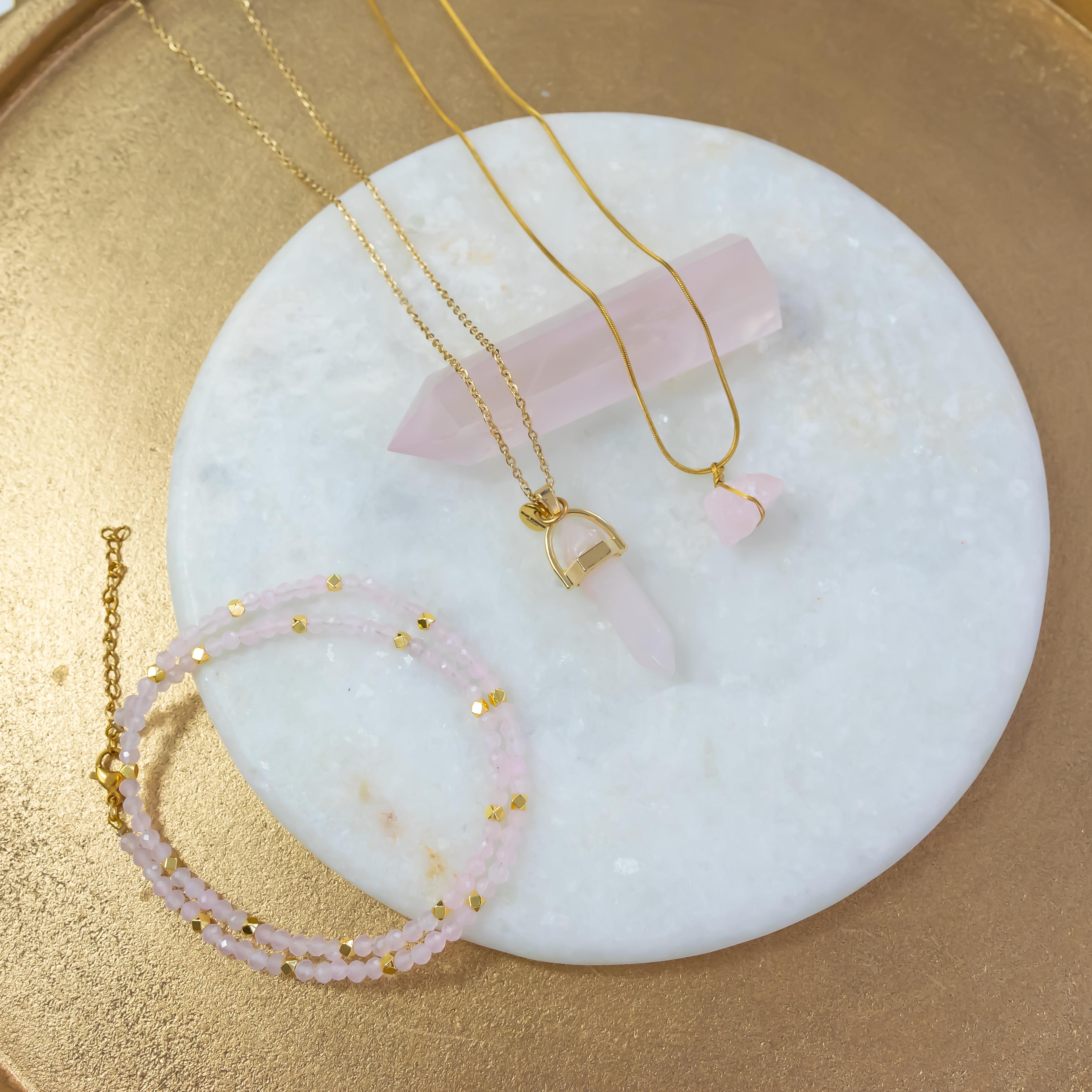 Wearing raw rose quartz brings a gentle energy that soothes anxiety and nurtures emotional well-being.